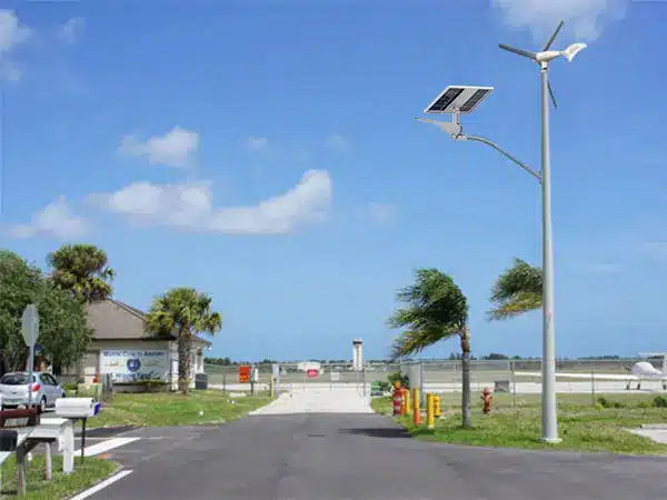 Hybrid street light powered by sun & wind and batteries, and provide continuous illumination at night.
